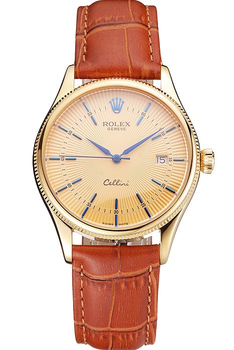 - Bracelet: Rolex and logo heat embossed light brown crocodile leather strap with Rolex logo carved 18k yellow gold plated hook-buckle clasp