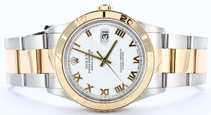 - Case: Stainless steel w/ 18k yellow gold Thunderbird bezelĀ (36mm)