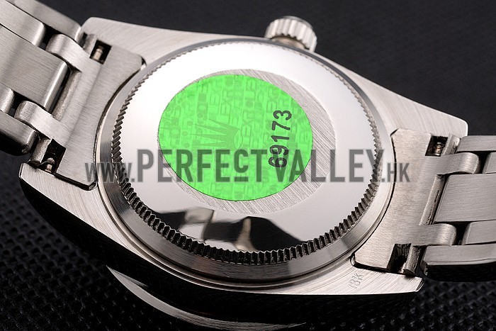 • Back: Polished stainless steel snap-in back with Rolex green authenticity sticker