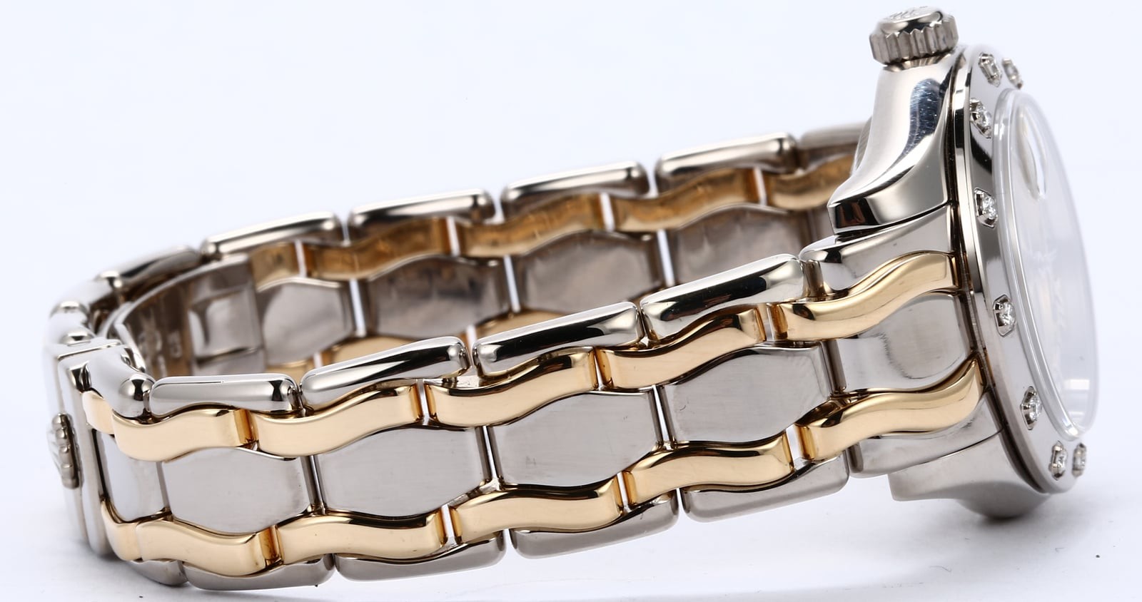 - Bracelet: 18k white gold and 18k yellow gold Rolex Pearlmaster w/ concealed Crownclasp