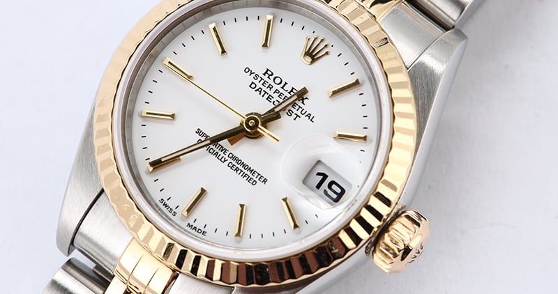 - Bracelet: 18k yellow gold and stainless steel Oyster w/ gold-thru Oysterlock clasp