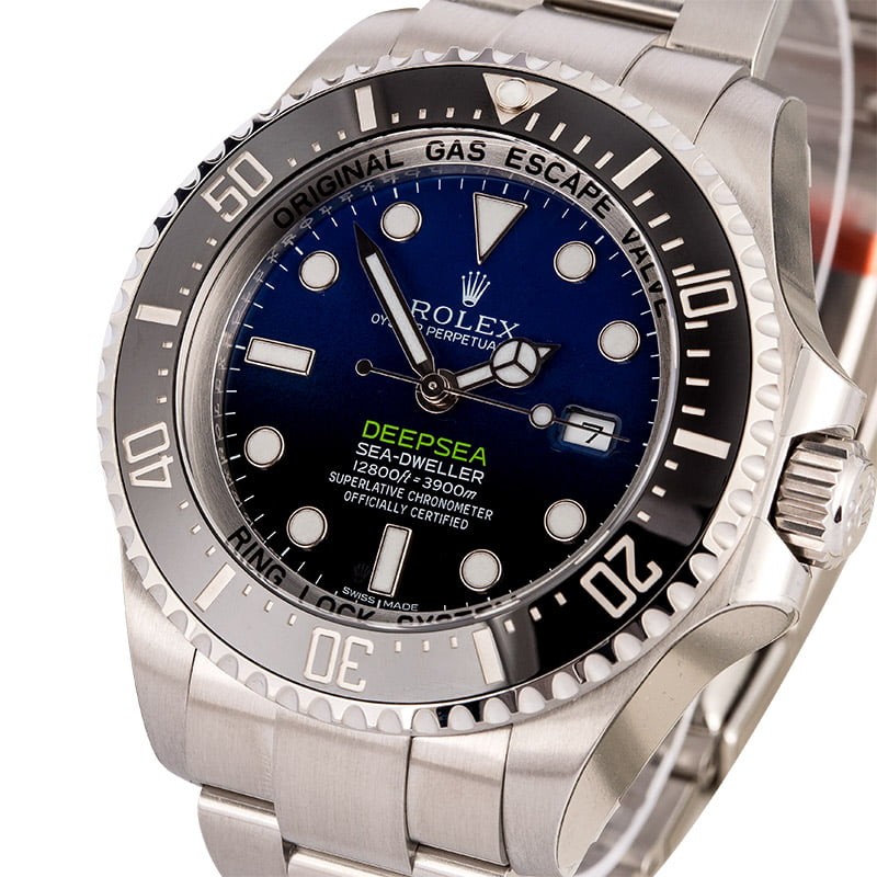 - Dial: Deep Blue w/ green "DEEPSEA" lettering, luminous hour markers